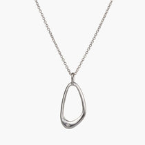 A smooth, shimmering pendant hanging from a delicate chain lends a feminine, soft look to a turtleneck. The silver medium pebble necklace from the Creek Collection would be a pretty addition to a cashmere turtleneck in a lovely fall hue.