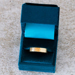 The Blue Ridge Flat Wide Band showcases a timeless rustic texture that adds character to any jewelry collection. Crafted in 14k yellow gold, this refined ring features a hand-hammered finish with small dimpled markings across its surface, creating a subtle play of light that enhances its natural appeal. The textured exterior contrasts beautifully with the smooth comfort-fit interior, ensuring everyday wearability. Available in widths from 4mm to 7mm, this versatile band works perfectly as a statement ring, wedding band, or signature piece. Also available in rose or white gold for personalized styling options.