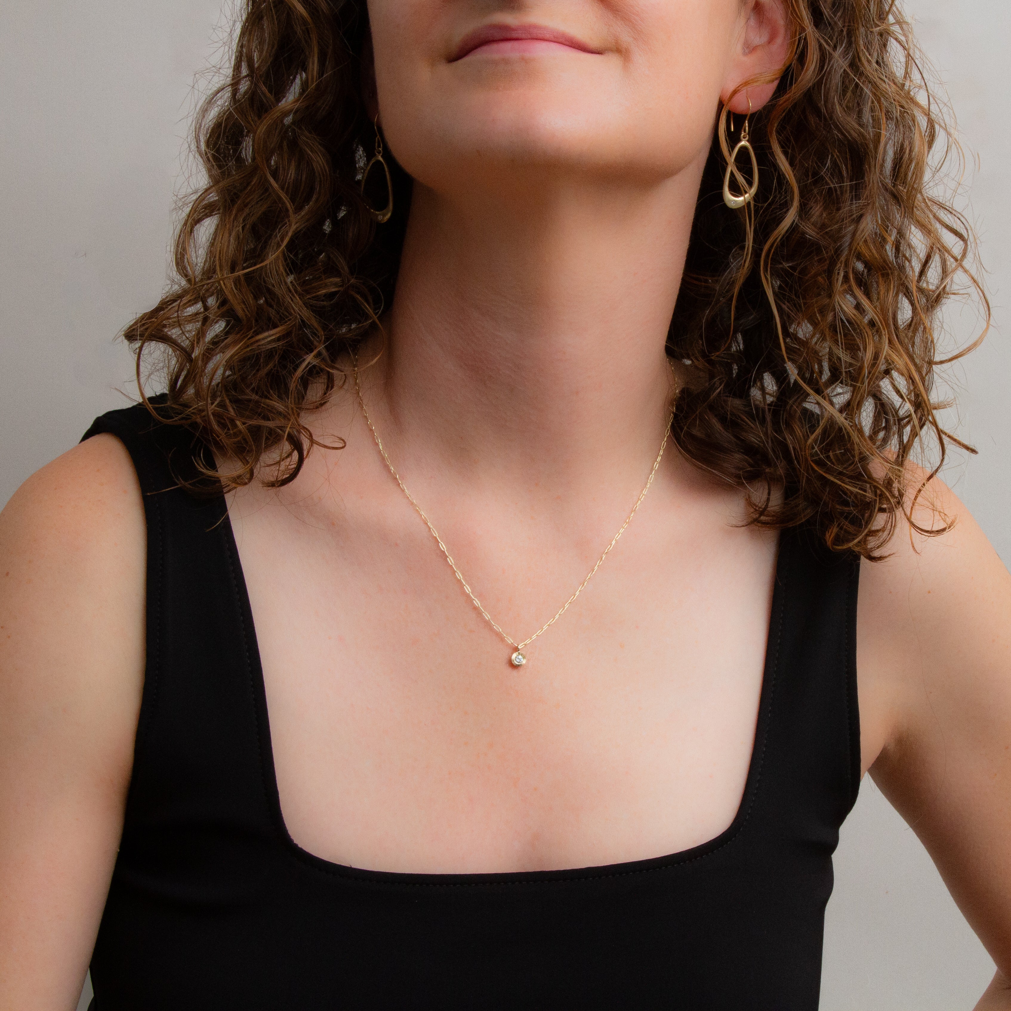 Aurora Drop Pendant with Diamond on Paperclip Chain in Yellow Gold