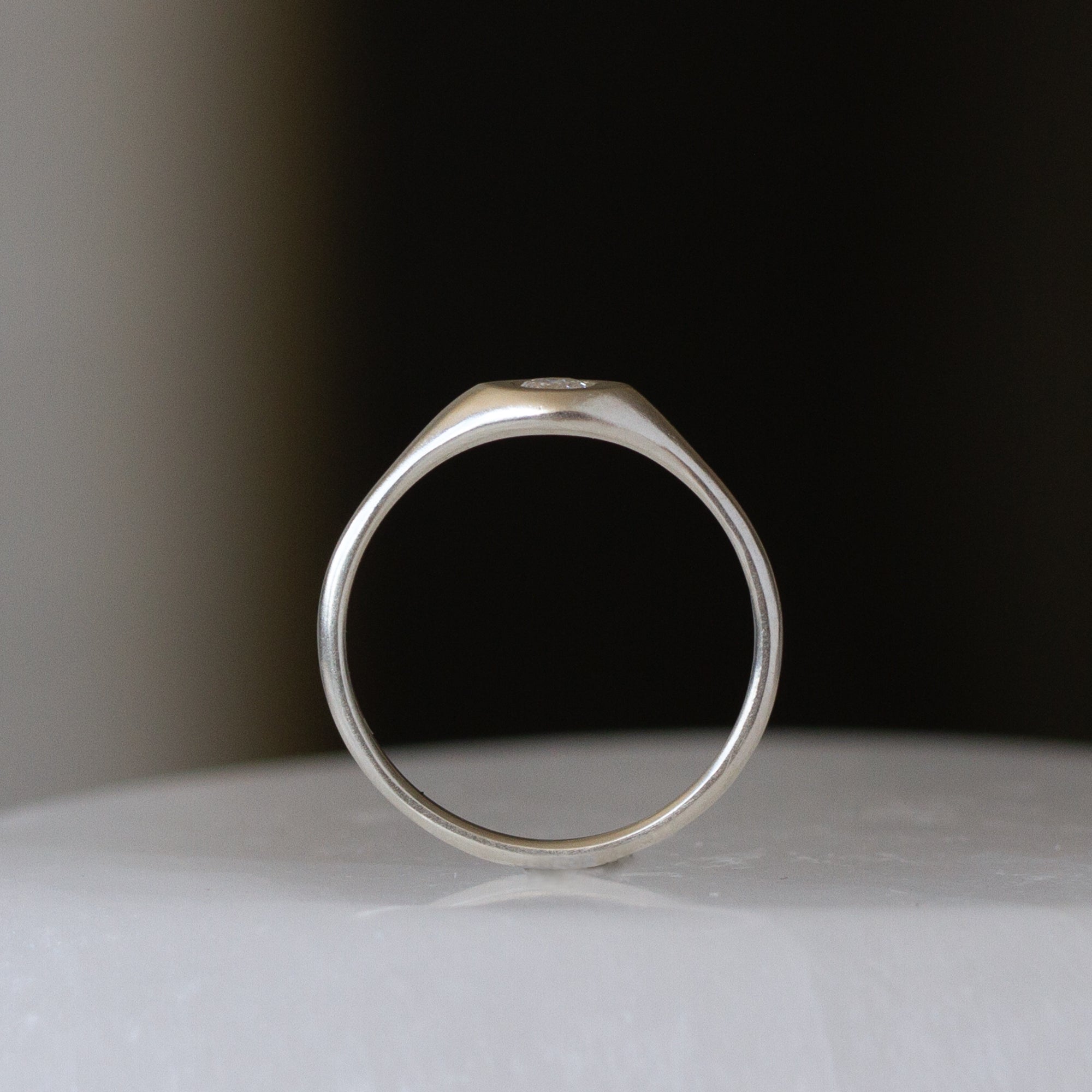 Silver Pebble Signet Ring with Diamond