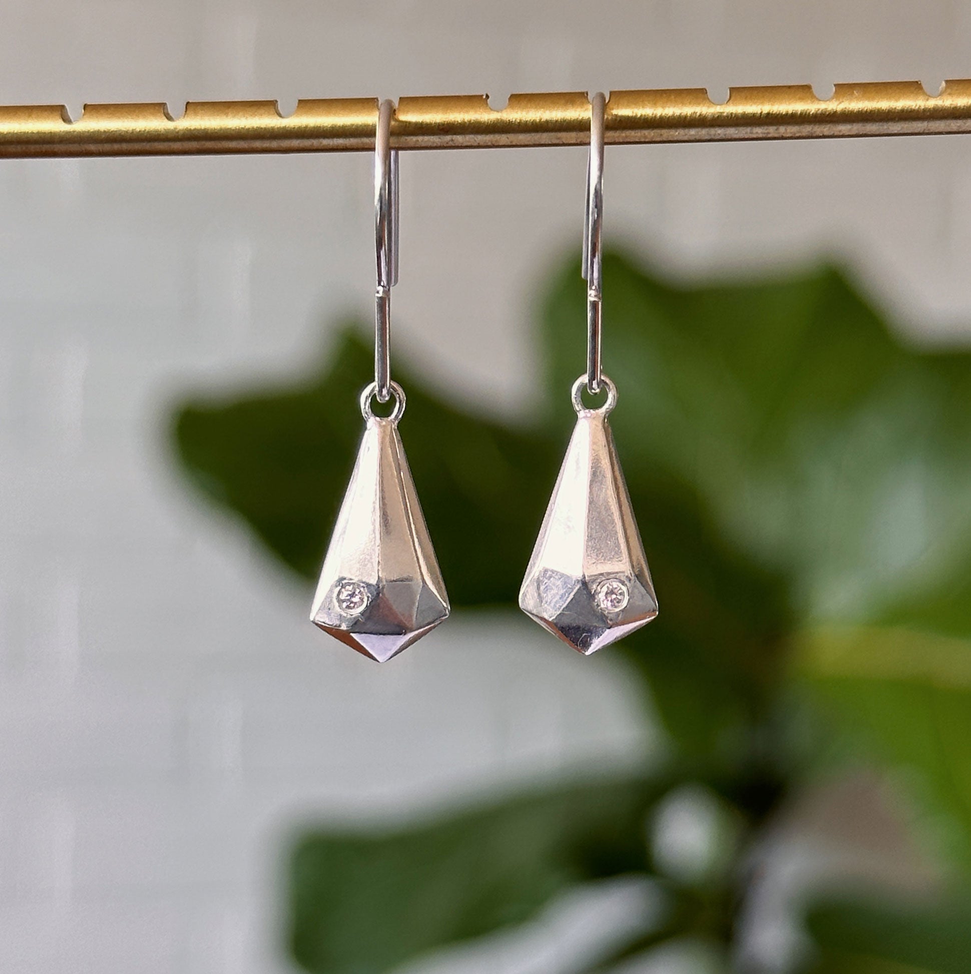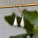 Silver Faceted Drop Dangle Earrings with diamonds on a white background