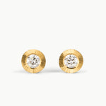Our signature Aurora design features sparkling diamonds surrounded by an impressive sunburst. These hand-engraved rays create a bold radial pattern that catches and reflects light with every movement. Our largest size Aurora studs make an elegant impact while maintaining the refined aesthetic of the collection.