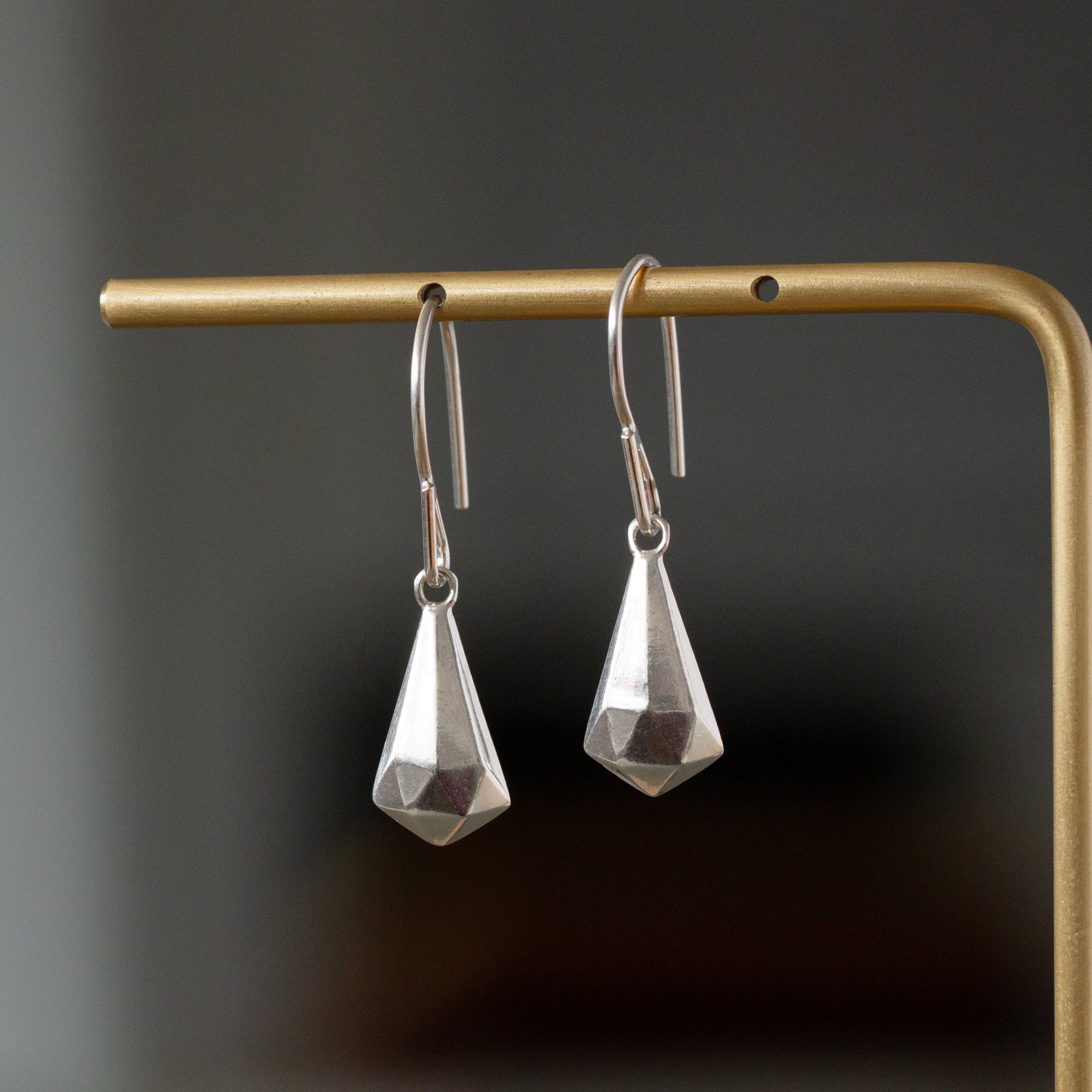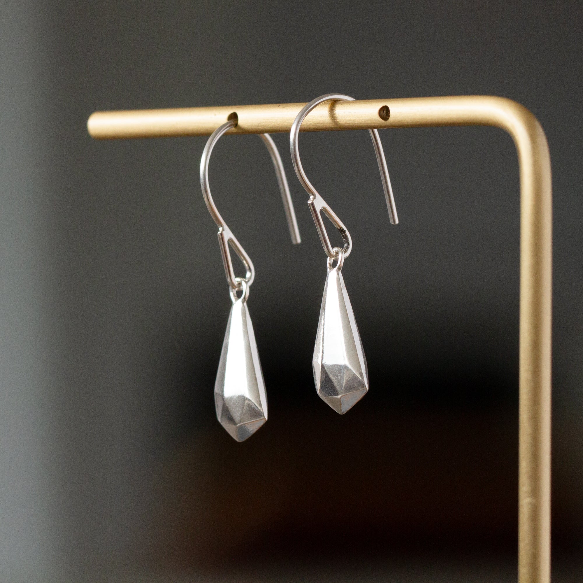 These plump little fragment drops are faceted on all sides and feel great pressed between your fingertips. They catch the light as you move and look as great from the back as they do from the front.