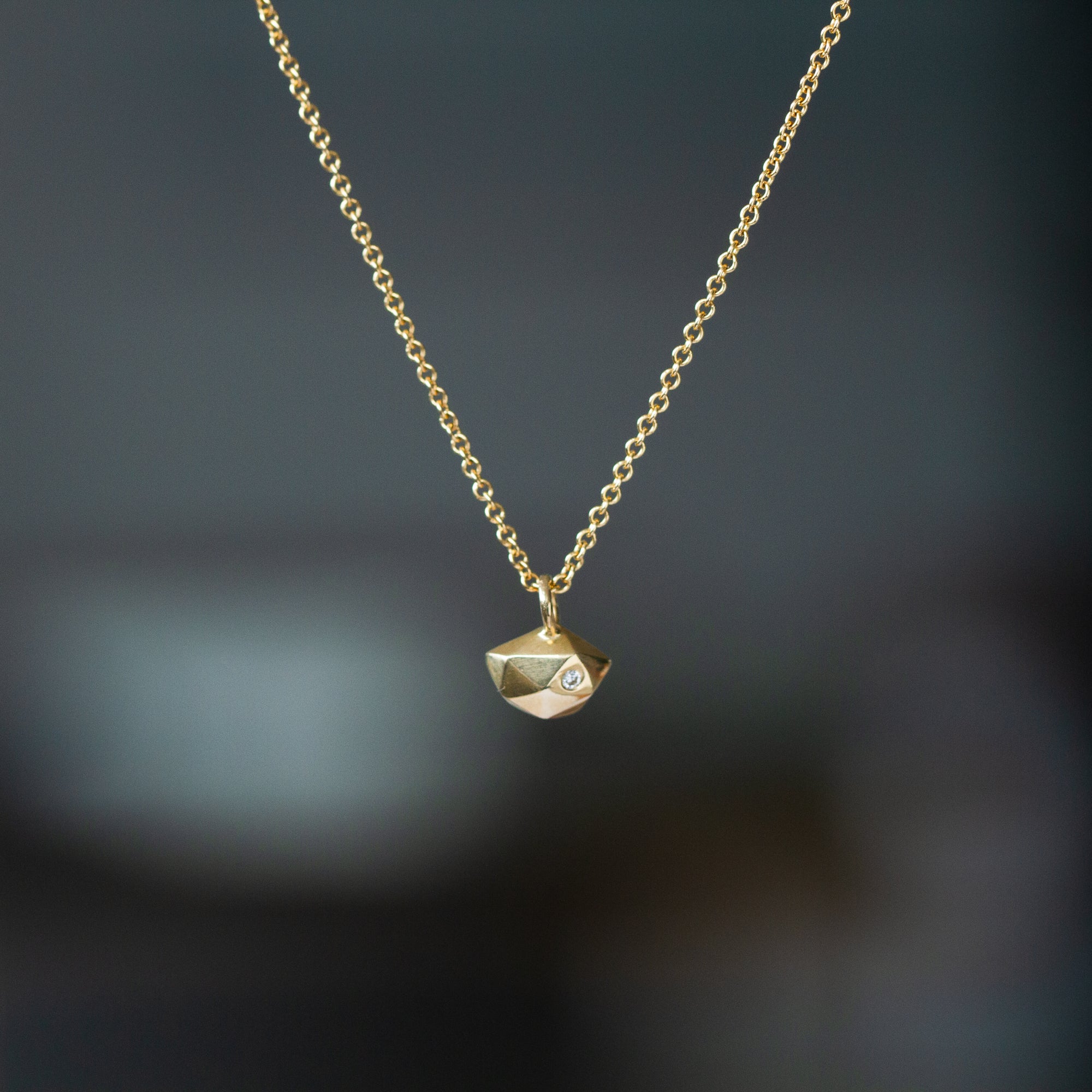 Add a touch of refined edge to your everyday style with the Tiny Fragment necklace. This sculptural pendant features crisp, geometric facets that catch and reflect light, while an ethically sourced Canadian diamond adds an unexpected sparkle. The adjustable classic cable chain lets you customize your look at 16" or 18". Perfect for the modern professional who wants to make a subtle statement. Each facet is thoughtfully hand-carved to create a piece that's both contemporary and timelessly elegant.