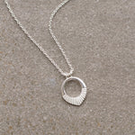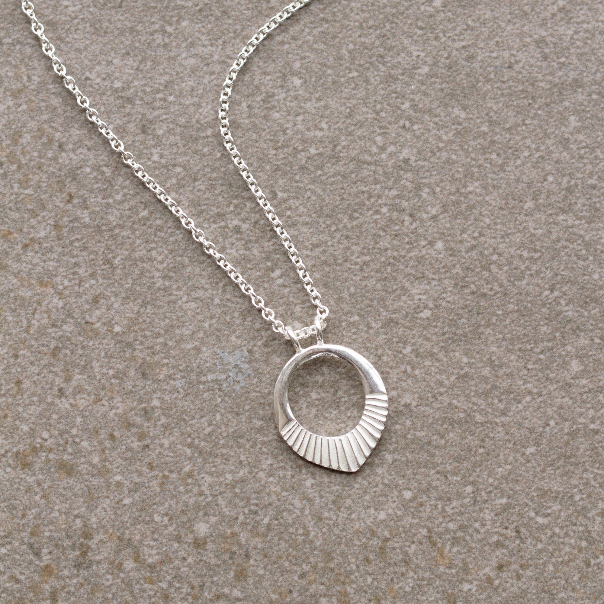 Inspired by the graceful interplay of light and form, the Small Helios Necklace features an eye-catching open petal design. The hand-carved rays create captivating texture and dimension, drawing the eye to the elegant negative space at its center. The adjustable chain can be worn at 16 or 18 inches, making this piece versatile for various necklines. Despite its bold presence, the pendant remains lightweight and comfortable for all-day wear. Whether paired with a casual tee or evening attire, this sculptural piece adds sophisticated interest to any look.