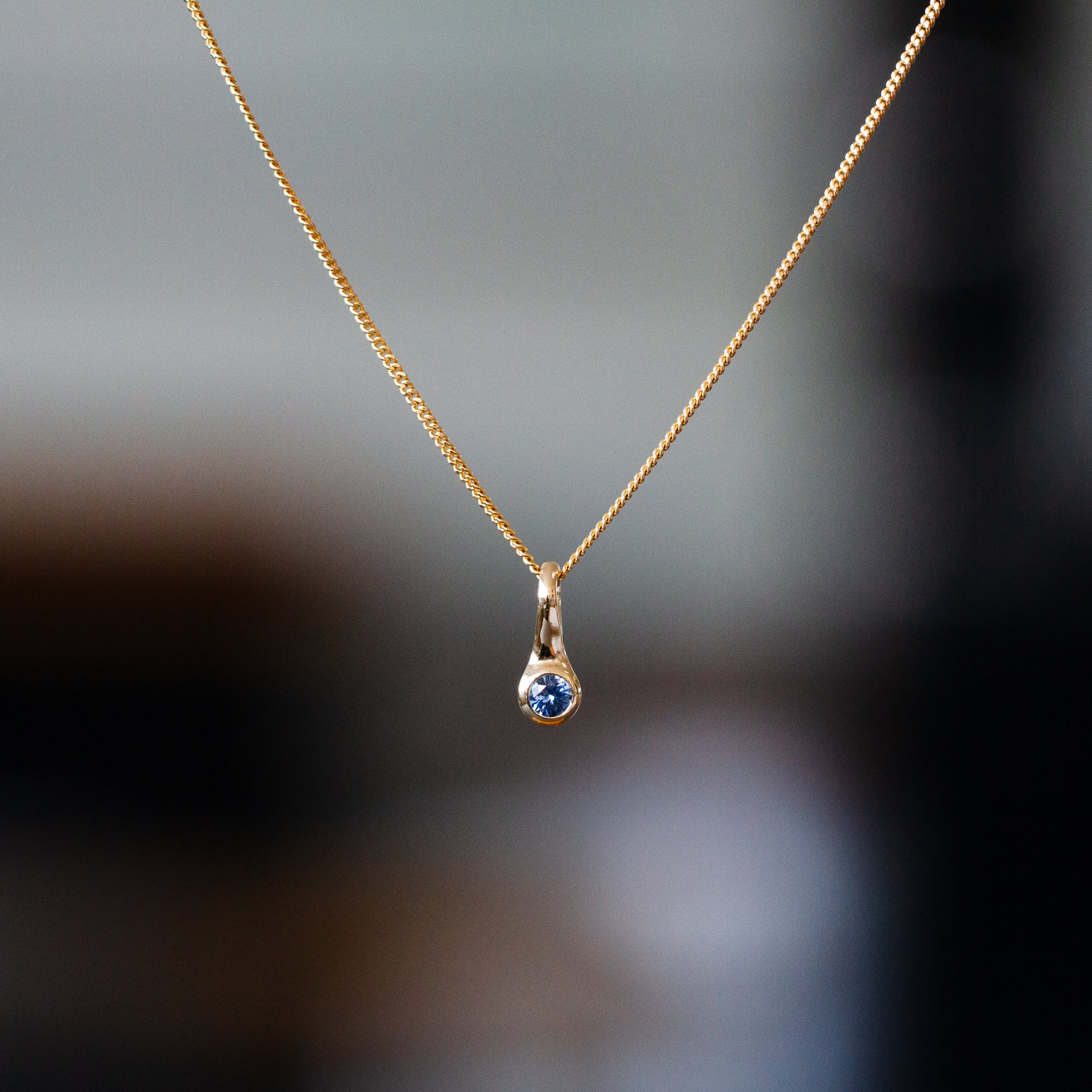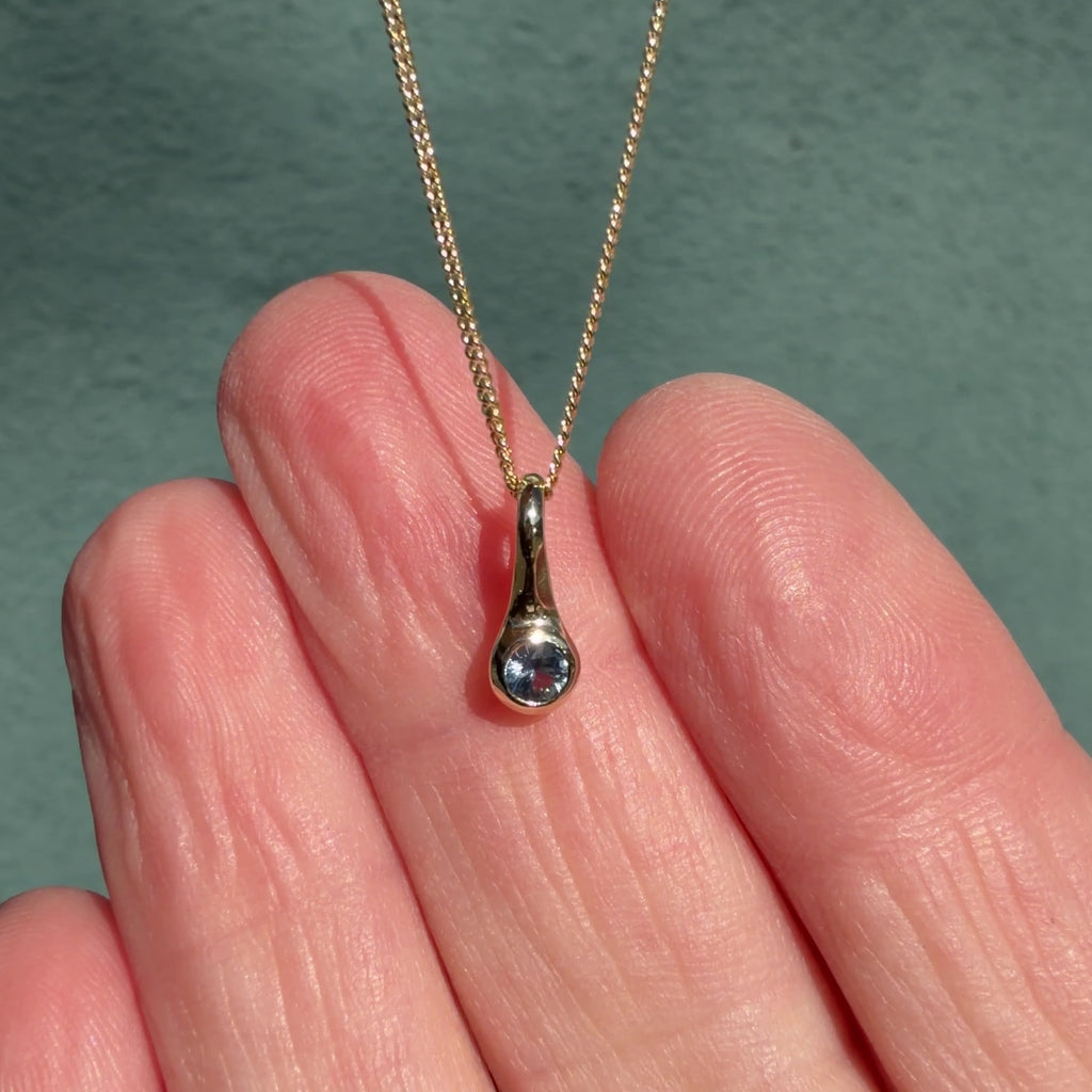 Small Medium Blue Montana Sapphire Drip Pendant in Yellow Gold