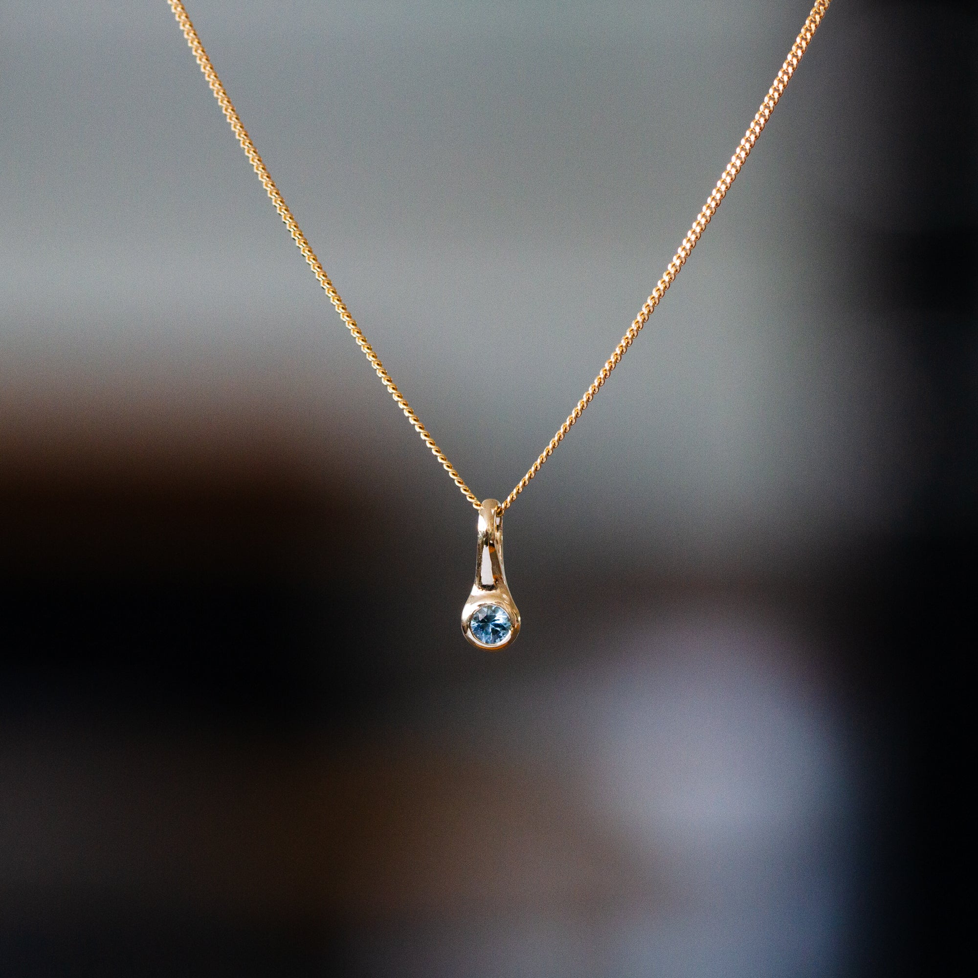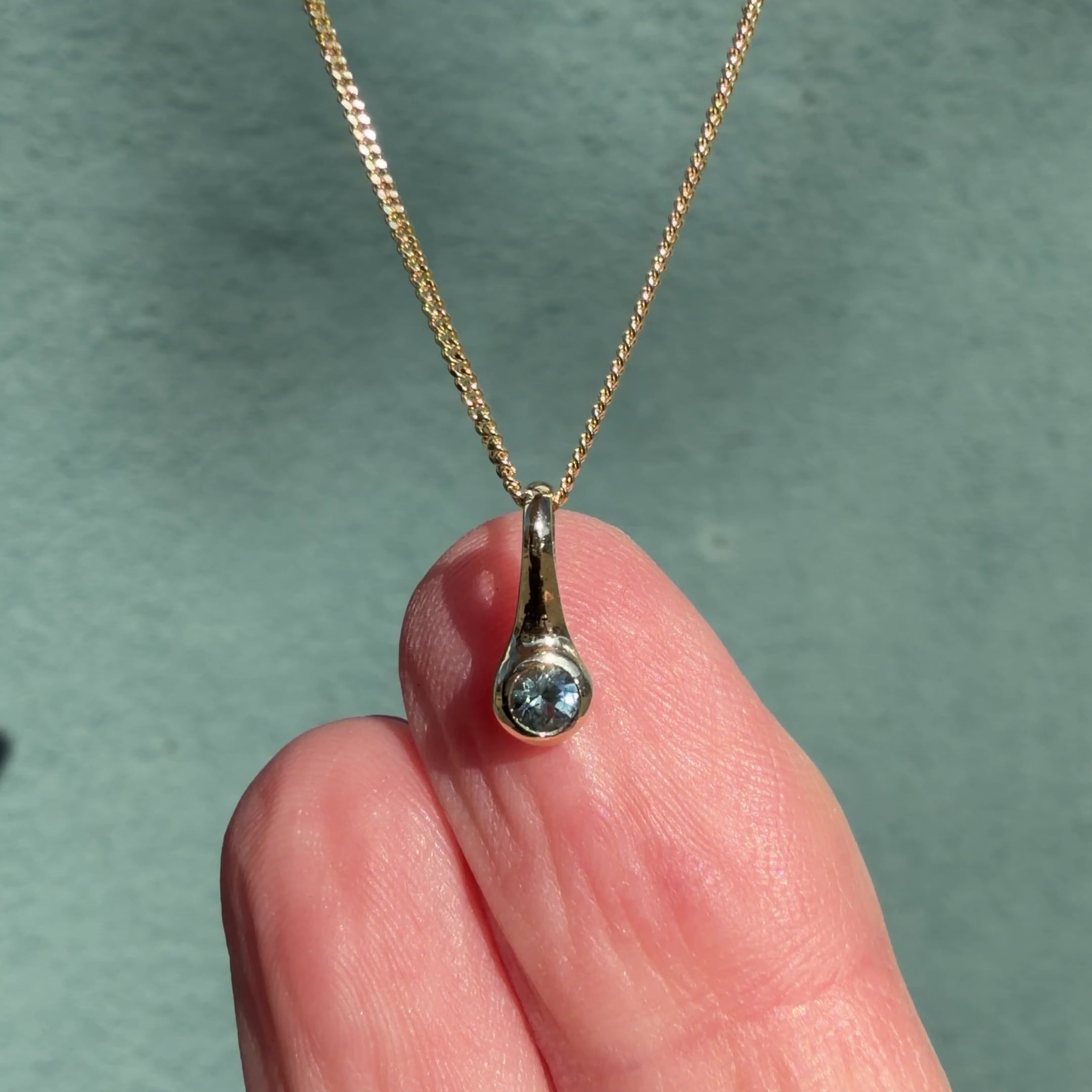 Small Teal Montana Sapphire Drip Pendant in Yellow Gold
