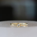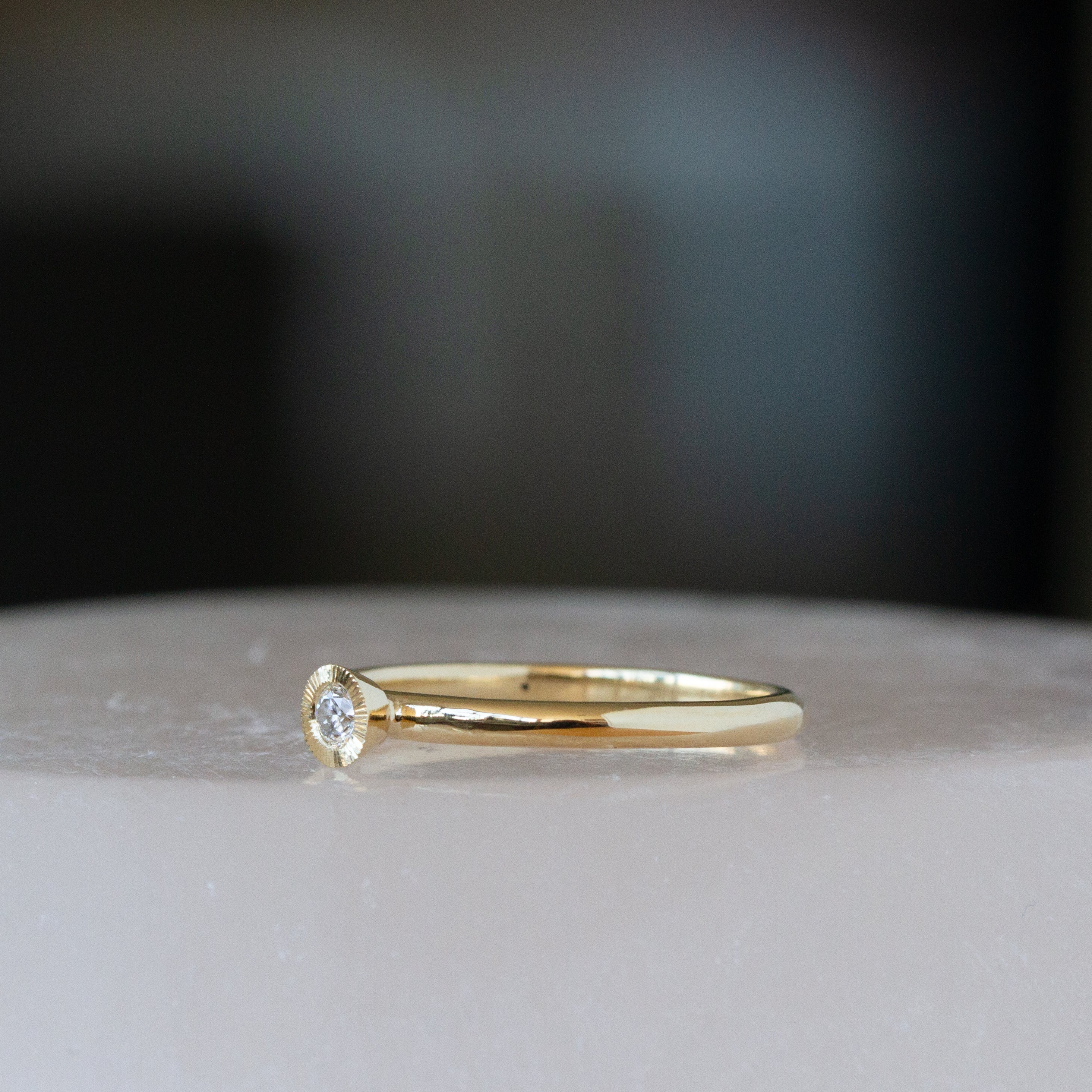 This elevated essential combines the classic appeal of 14k yellow gold with the enduring sparkle of a responsibly sourced diamond. The ring's thoughtful design allows it to stand alone as an elegant everyday piece or blend seamlessly with additional Aurora stacking rings of varying sizes and metals for a personalized expression of your style.