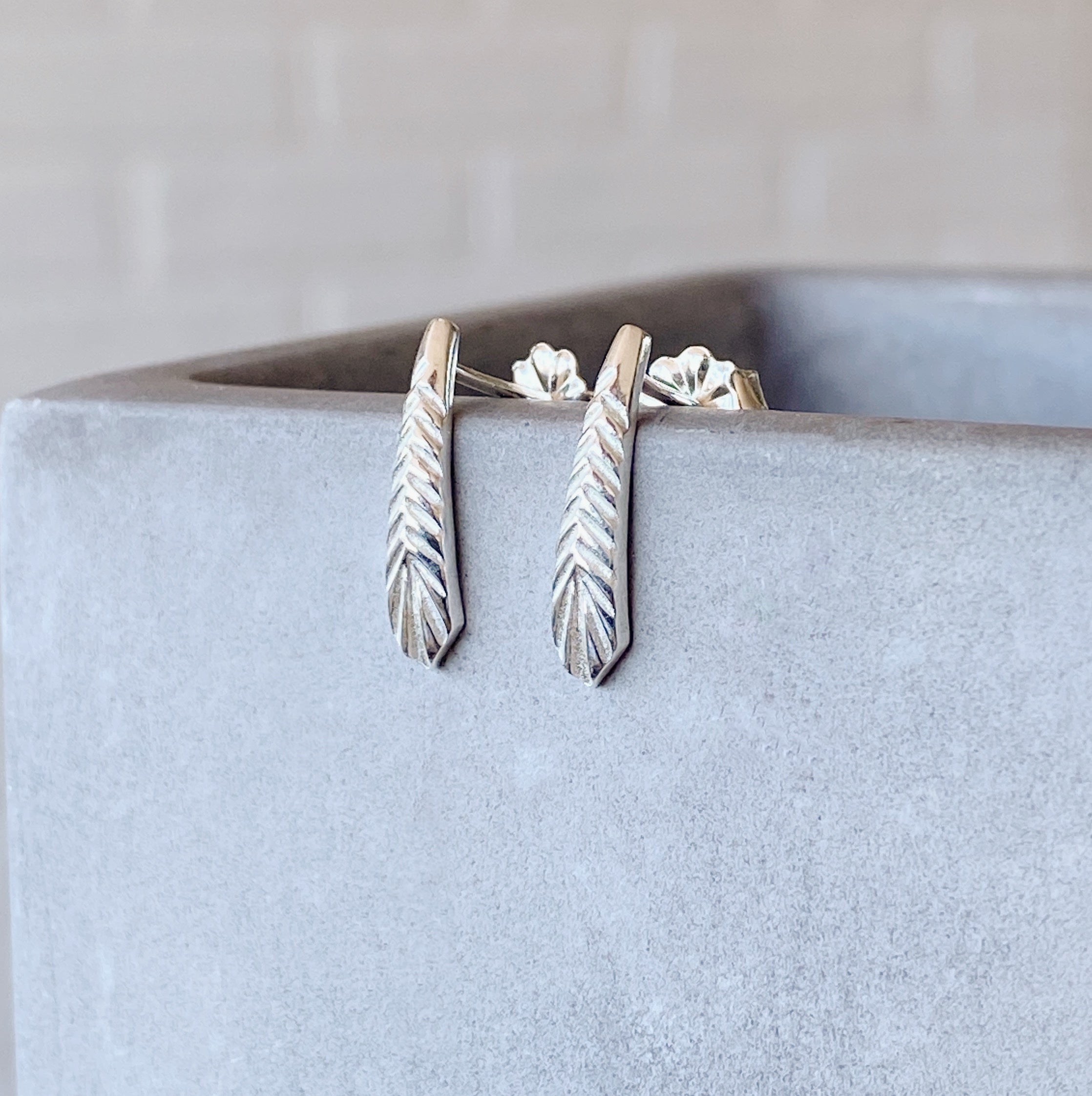 Sleek yet detailed, these Tapered Herringbone Studs showcase the beauty of hand-carved patterns. Each sterling silver piece features a graceful elongated silhouette with a distinctive herringbone lines that creates striking dimensional texture—a design detail that invariably draws admiring glances and compliments.