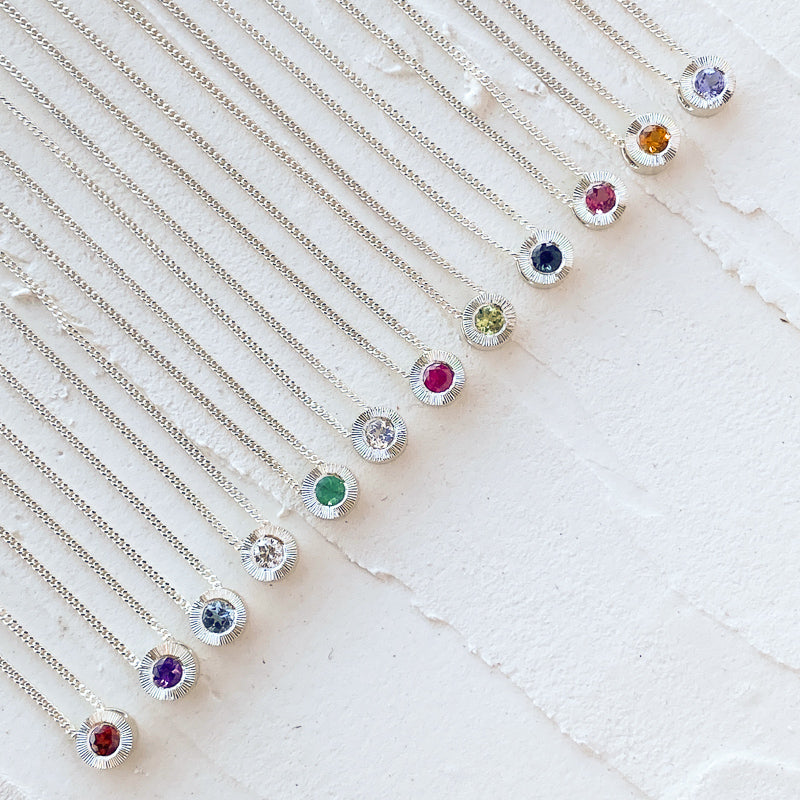 Small Aurora Birthstone Necklace in Sterling Silver