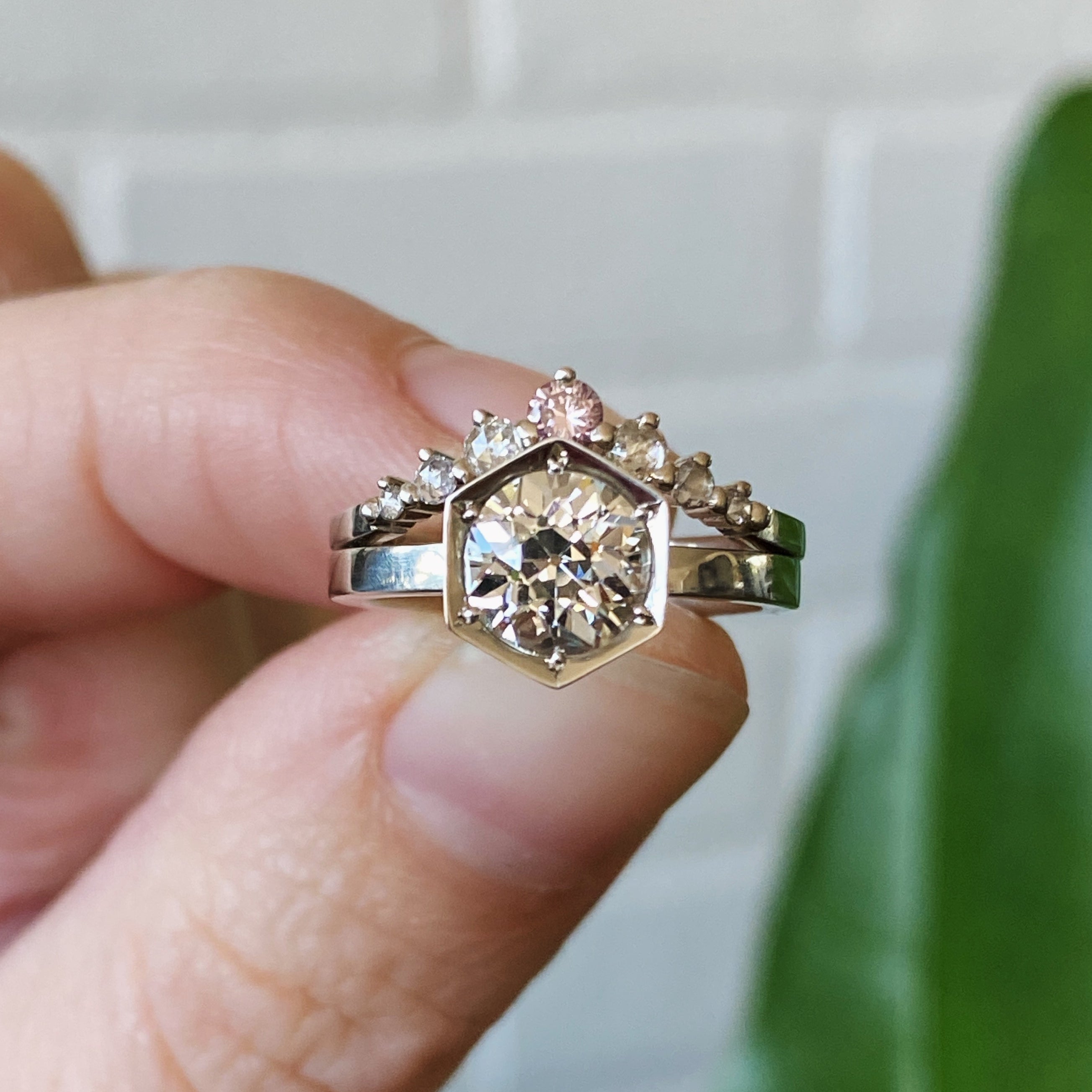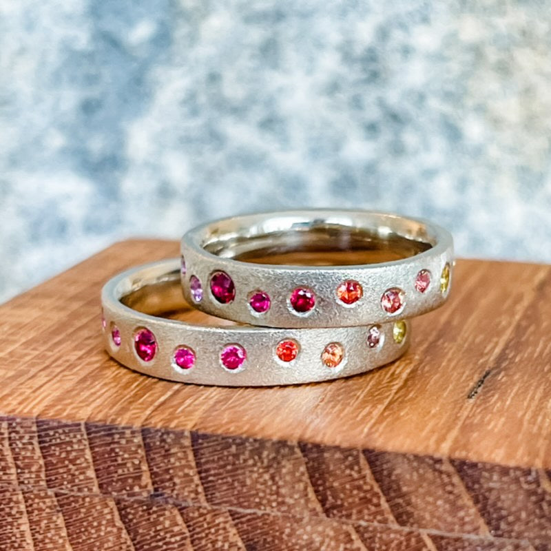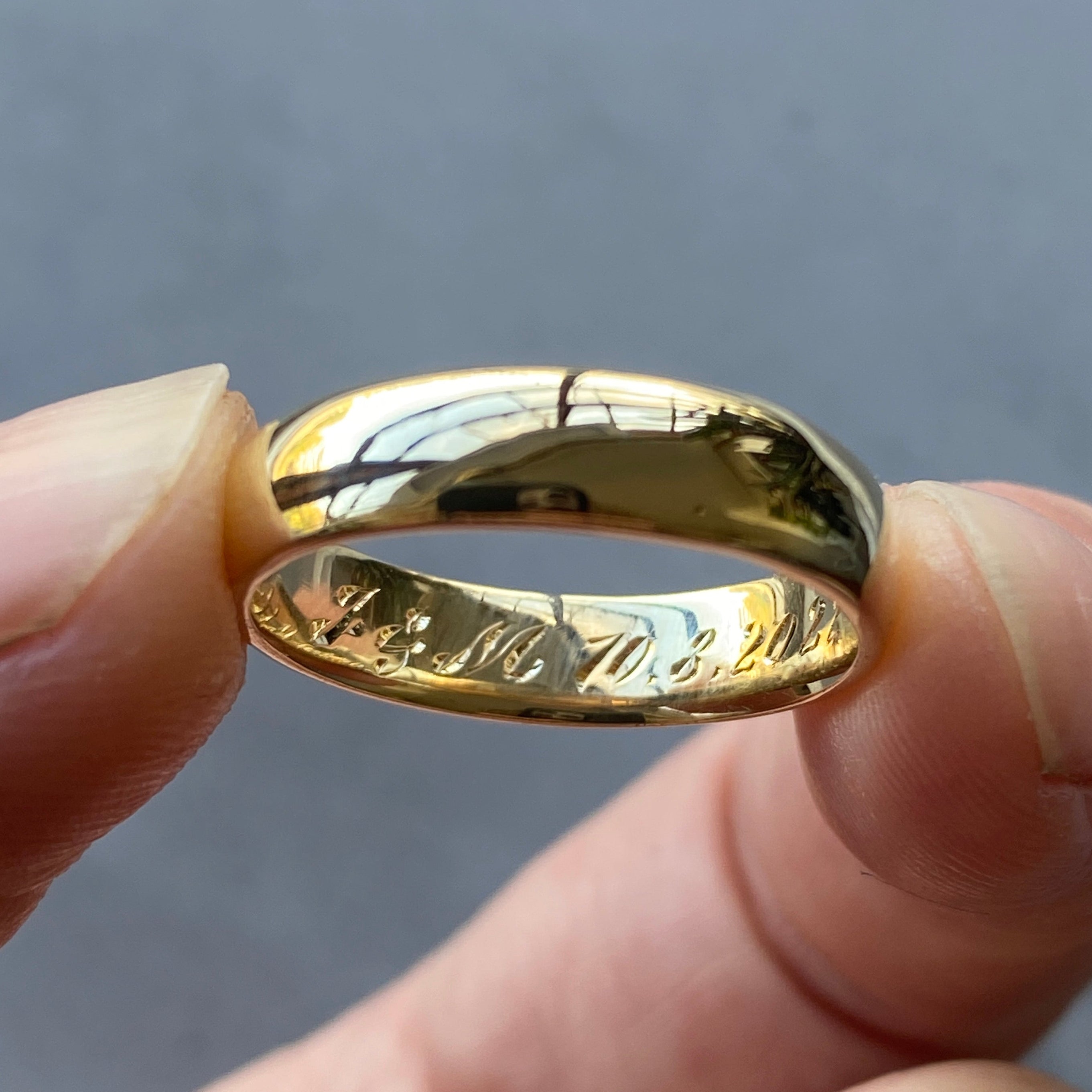 Custom wedding bands often evolve from an existing Corey Egan wedding or Diamond Band, and clients choose updates to make them their own. Common updates include personalized engraving, custom widths, and choosing alternate diamonds or gemstones. We can also customize wedding bands to contour around your existing engagement ring.