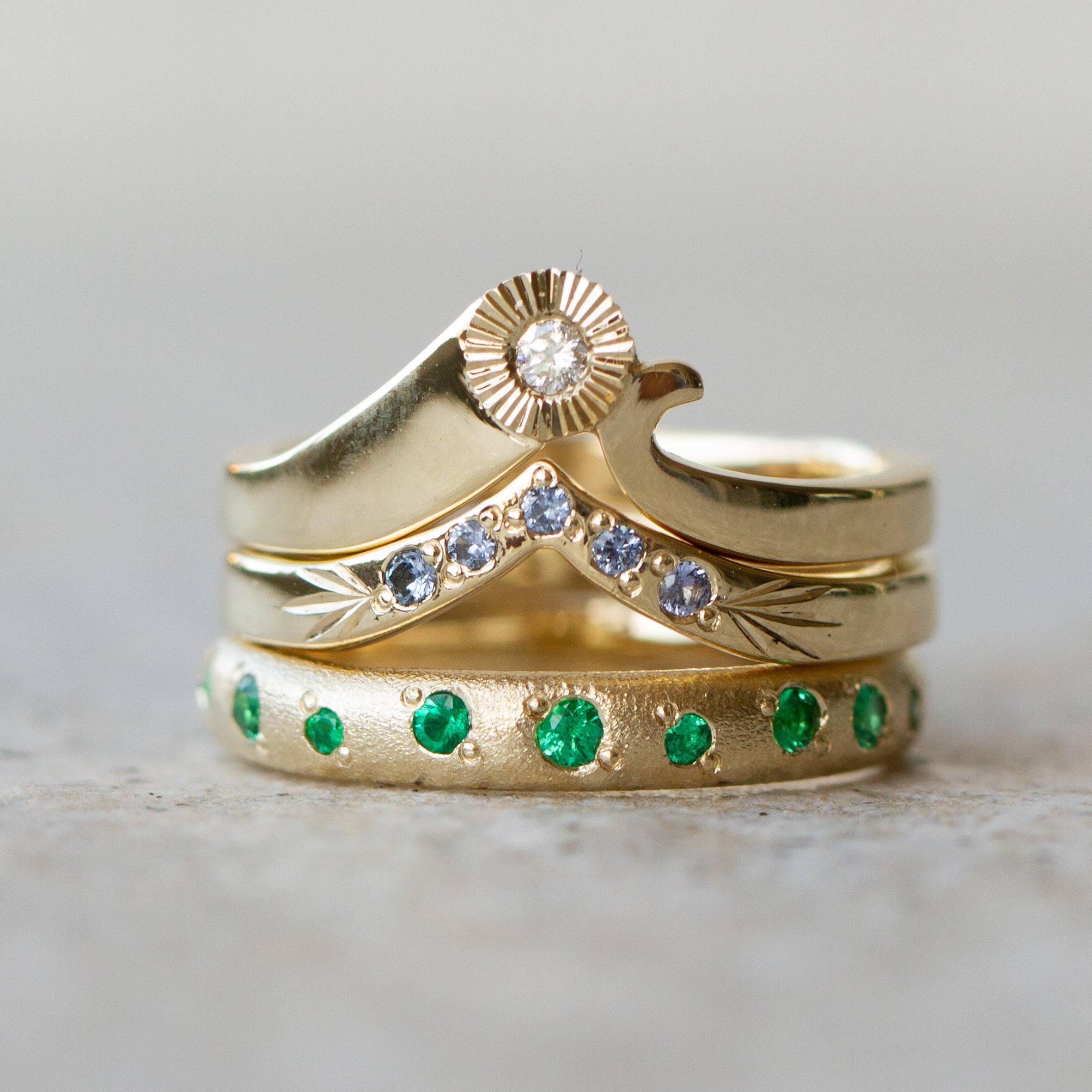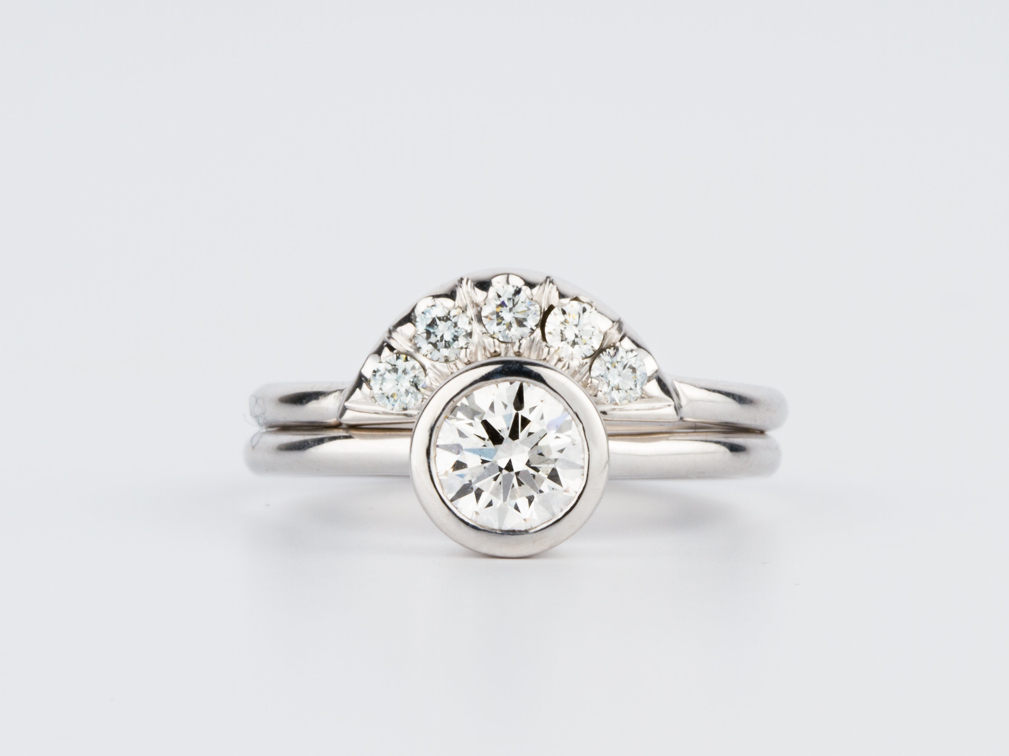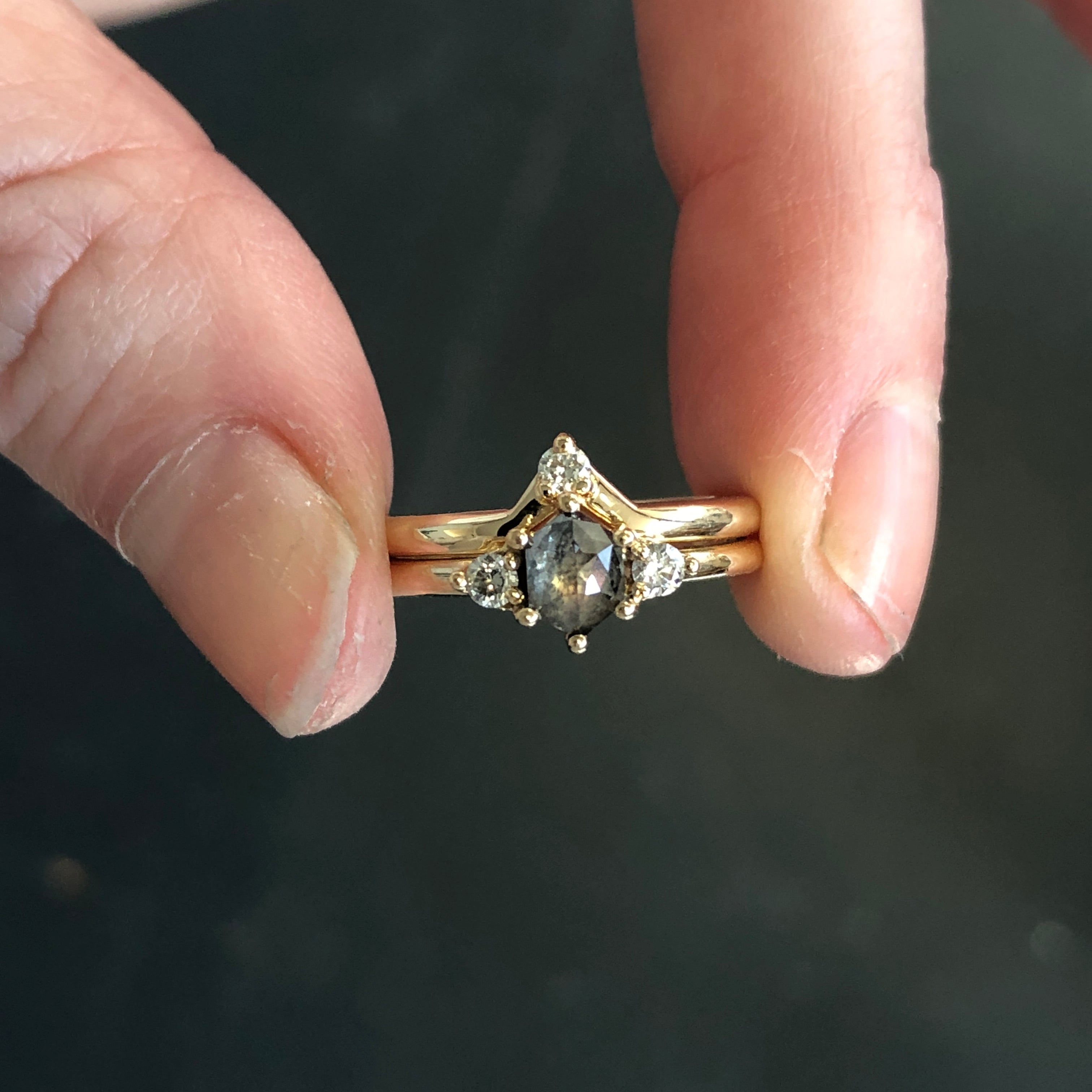Custom wedding bands often evolve from an existing Corey Egan wedding or Diamond Band, and clients choose updates to make them their own. Common updates include personalized engraving, custom widths, and choosing alternate diamonds or gemstones. We can also customize wedding bands to contour around your existing engagement ring.