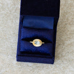 Montana sapphires are prized for their exceptional quality and ethical American sourcing. This particular gem exhibits a vivid blue hue that captures attention from every angle. The distinctive east-west setting offers a fresh take on the classic engagement ring.