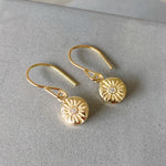 These elegant Lucia earrings - meaning 'Carrier of Light' - are designed to catch and reflect light with every movement. The polished 14k gold creates a lustrous backdrop for the thoughtfully carved sunburst pattern, while ethically sourced Canadian diamonds (.03ct tw) add a subtle sparkle at the center. At a graceful 1" length, these earrings make a refined statement while remaining delightfully wearable. Whether paired with your favorite dress or everyday attire, these artful drops will bring warmth and radiance to any look, becoming a cherished part of your jewelry collection.