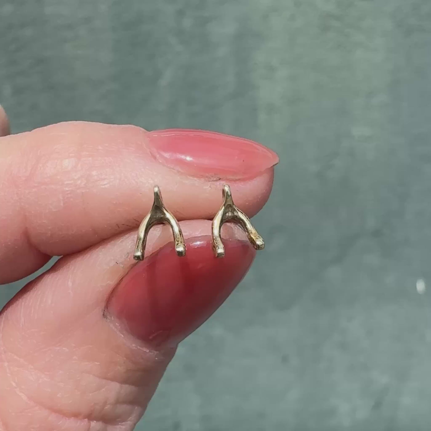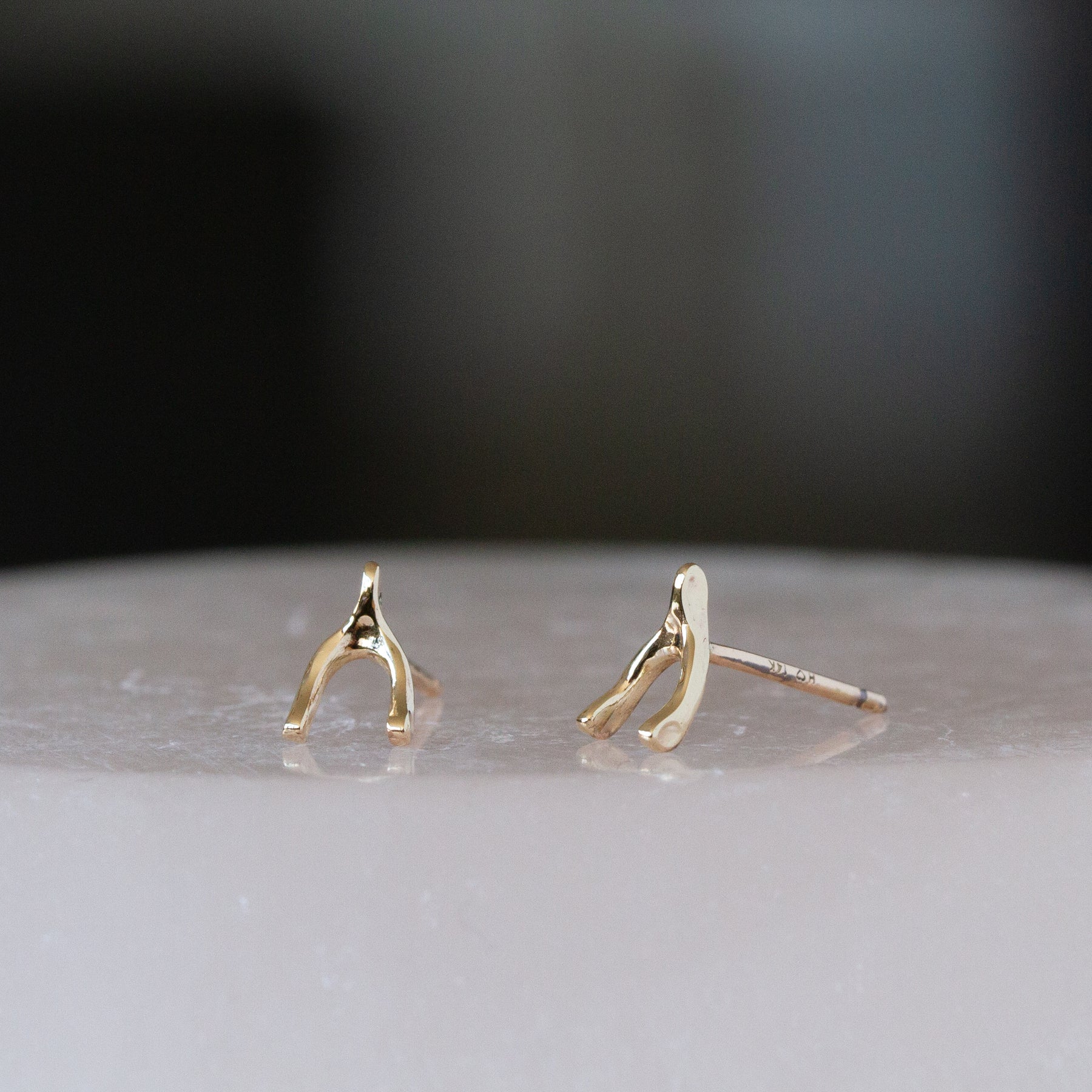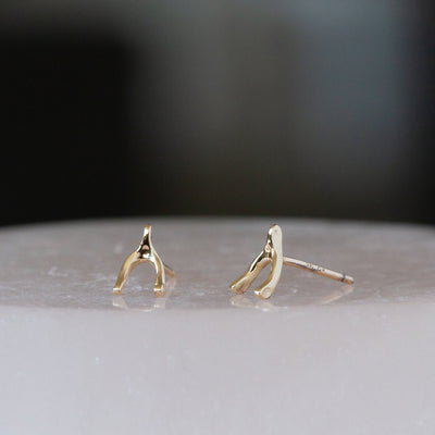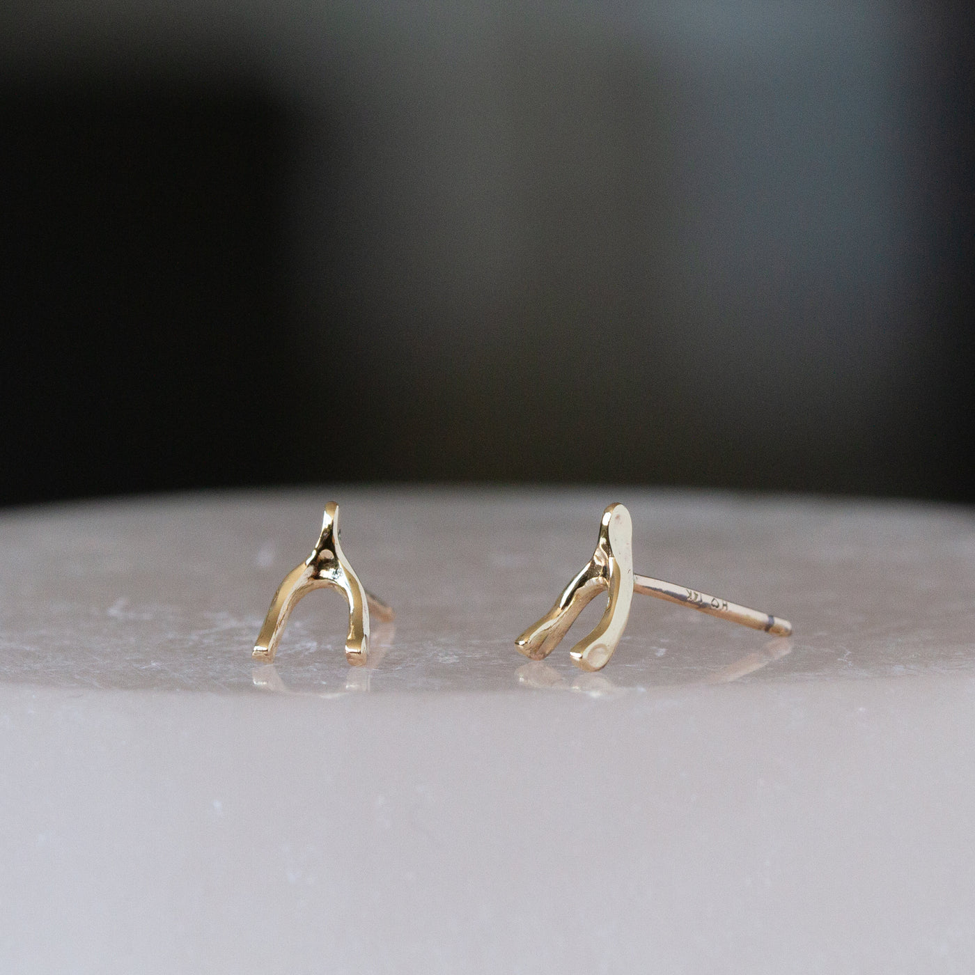 14k Yellow Gold Wishbone Stud Earrings by Corey Egan