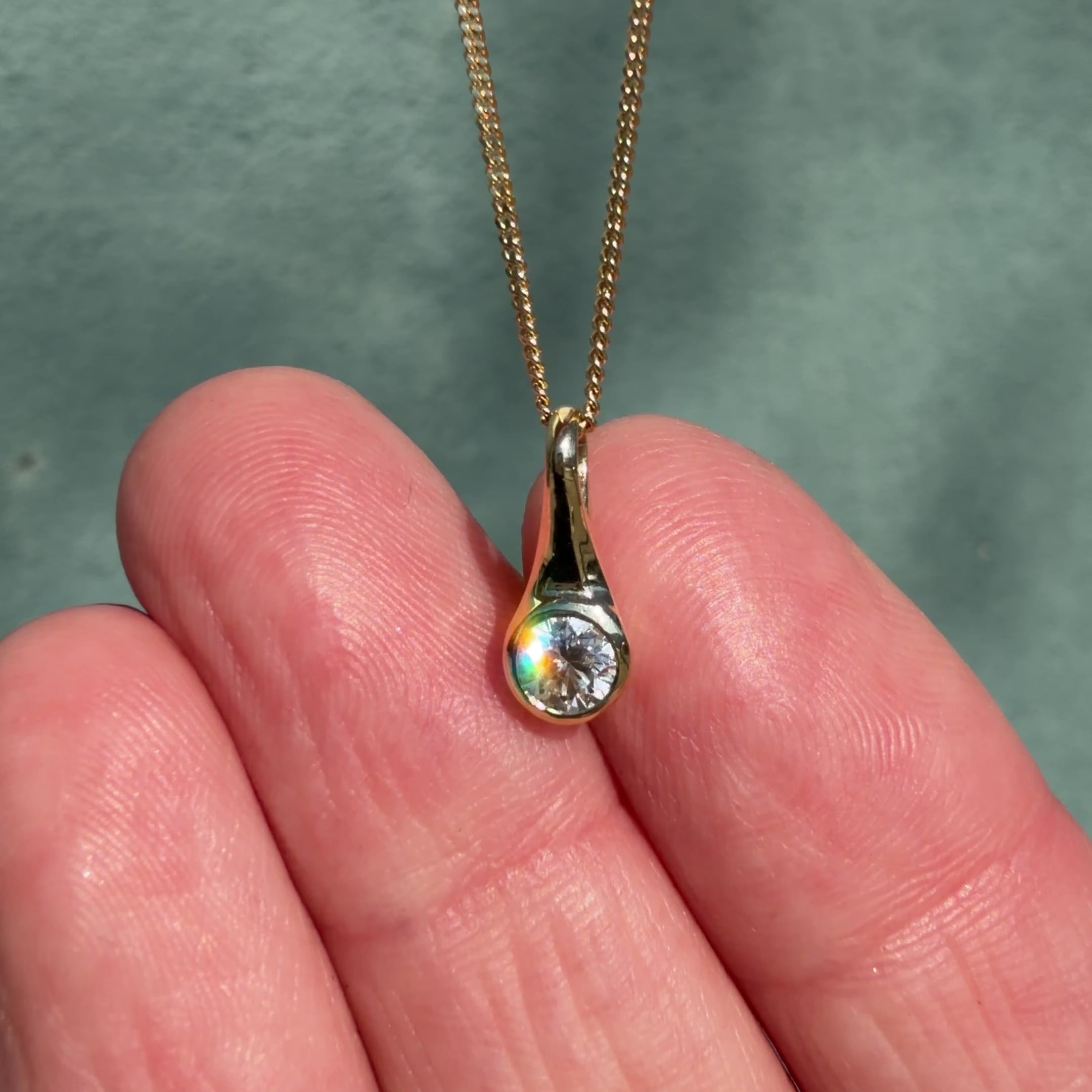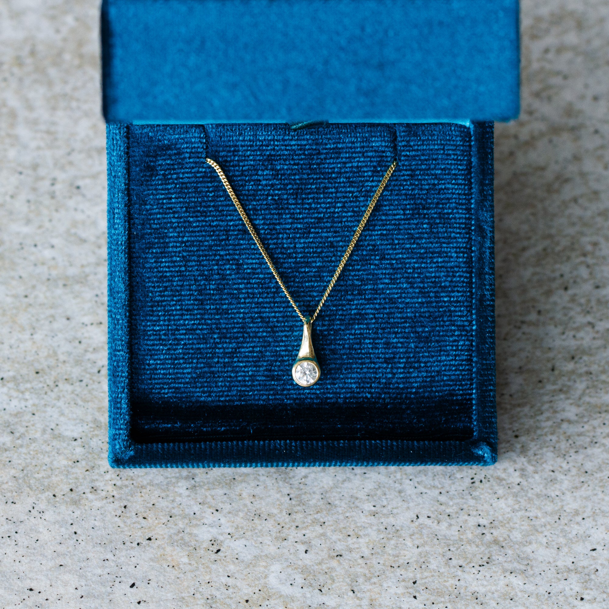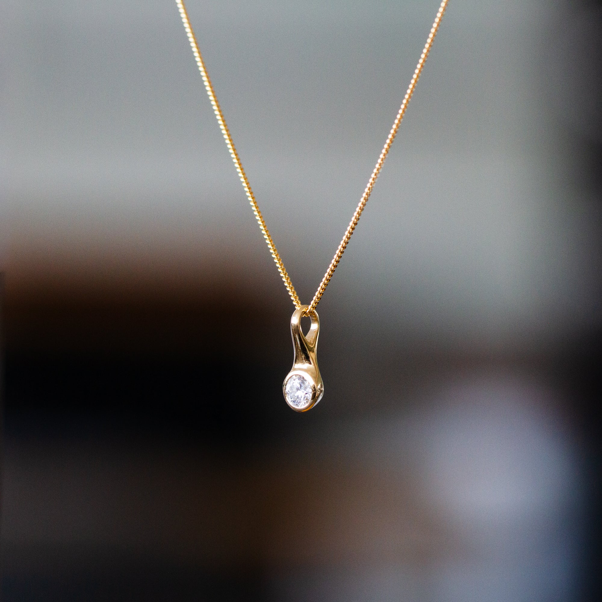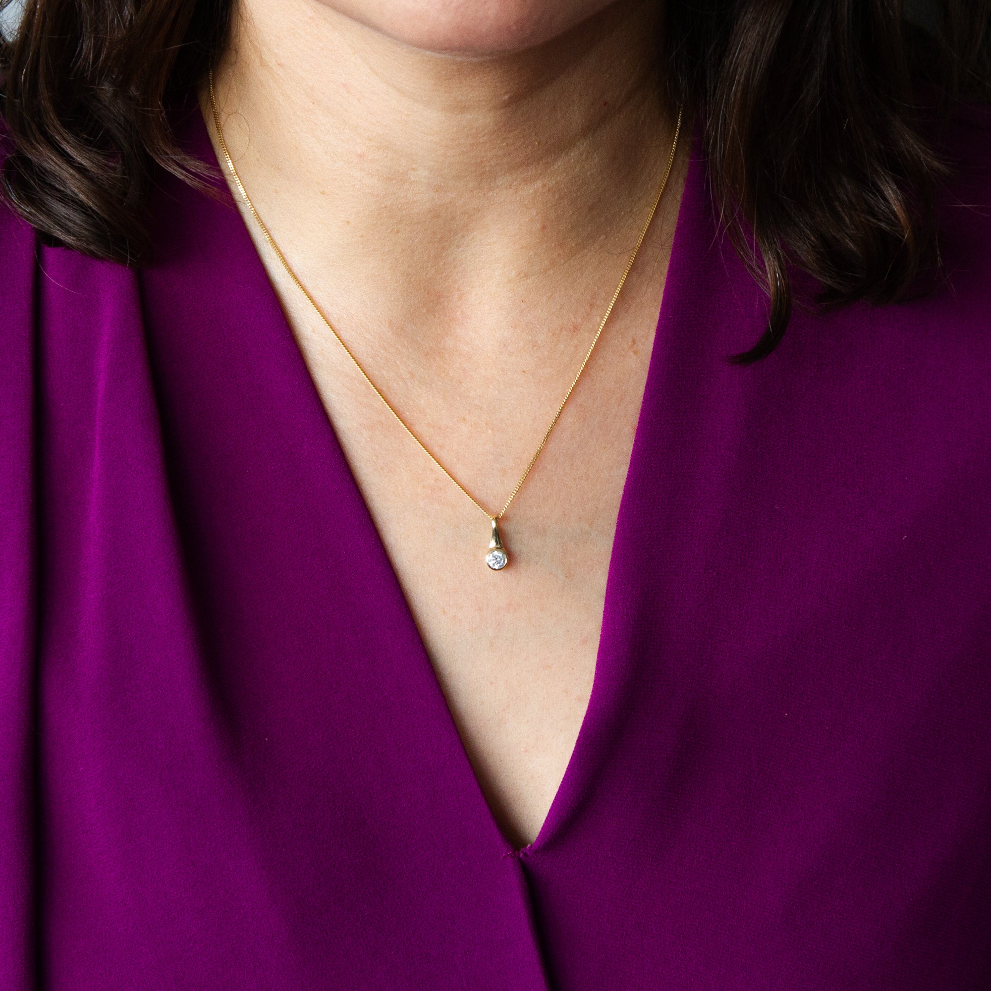 Sleek and sculptural, the hand-carved Medium Diamond Drip pendant makes a brilliant statement. The high-polish drop cradles a quarter-carat lab-grown diamond in its elegant form, creating eye-catching sparkle as you move.